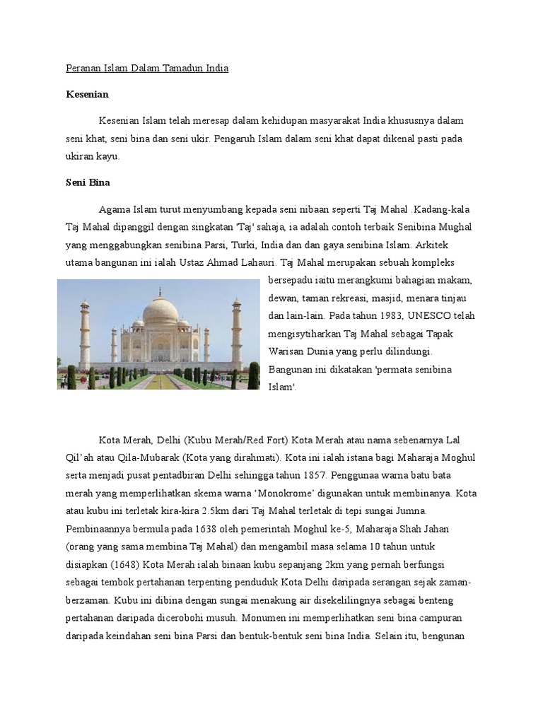 Up to 24 cash back Tamadun India merujuk kepada tamadun yang berpusat di Lembah Sungai Indus. India merupakan tanah tamadun yang pernah gemilang pada suatu ketika dahulu. Tamadun ini unggul kerana mengandungi beberapa agama seperti Hindu Islam Buddha Jaina Sikh.